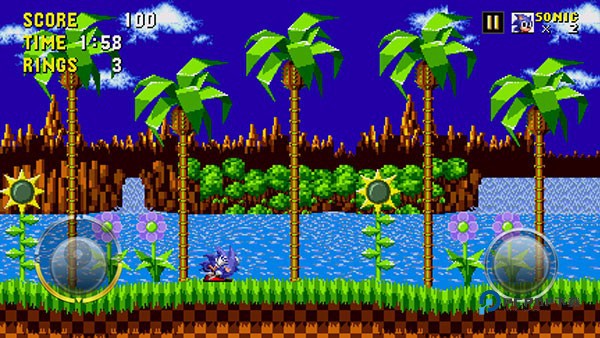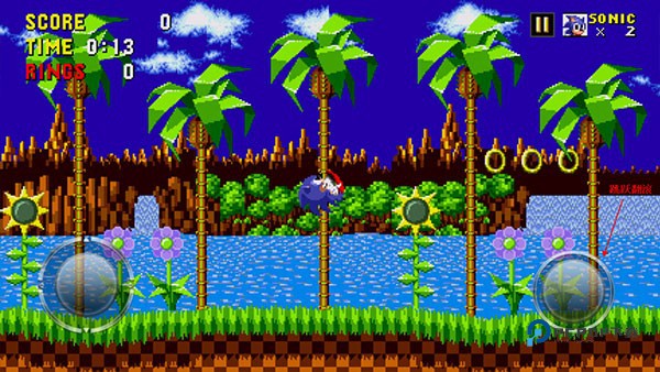 5、进入后左下角按钮左右滑动控制索尼克移动向左向右跑。