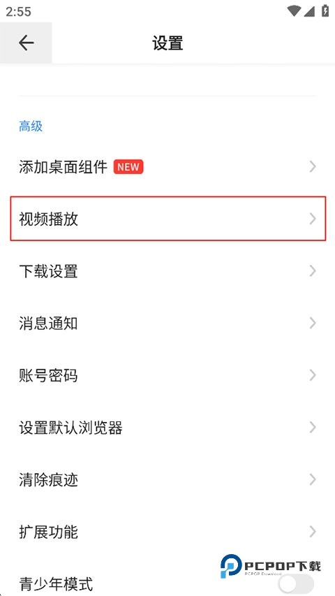 2、在设置页面找到并点击视频播放功能;