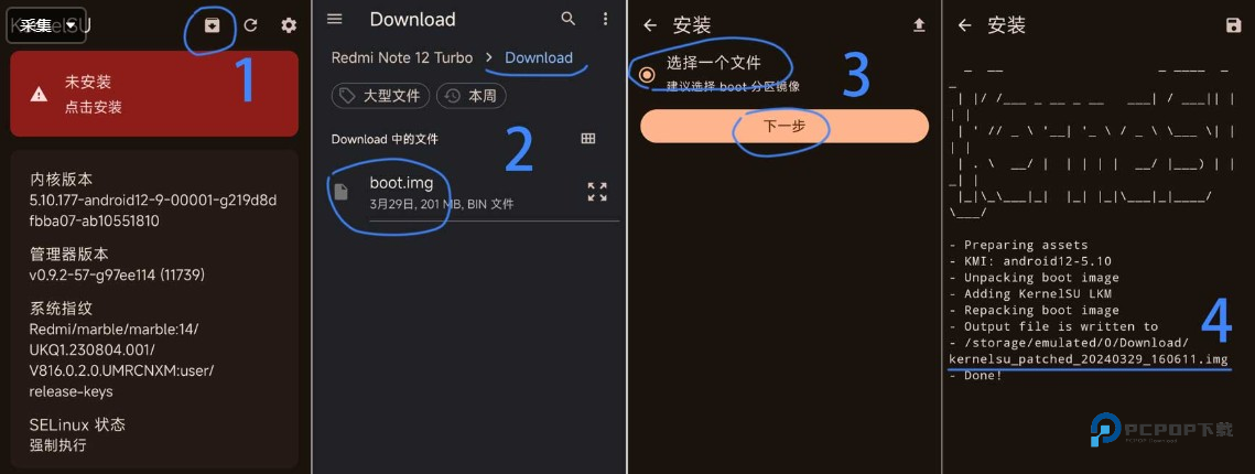 修补生成的文件kernelsu_patched-xxx.img在Download目录
