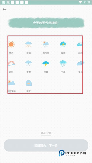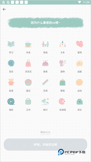 5、然后就可开始填写了,还可以通过下方便签记录当时心情的贴纸。