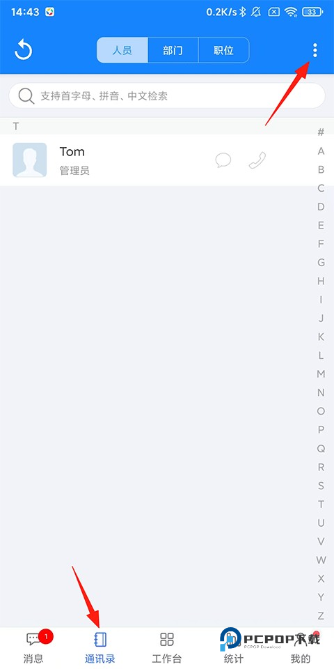 1、打开客户无忧官方版APP,点击【通讯录】-右上角的扩展按钮;