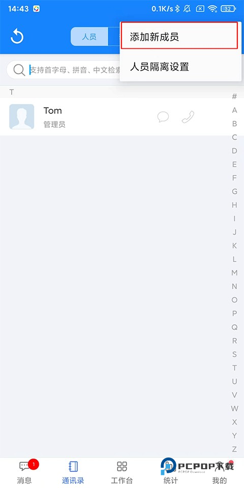 2、点击【添加新成员】;