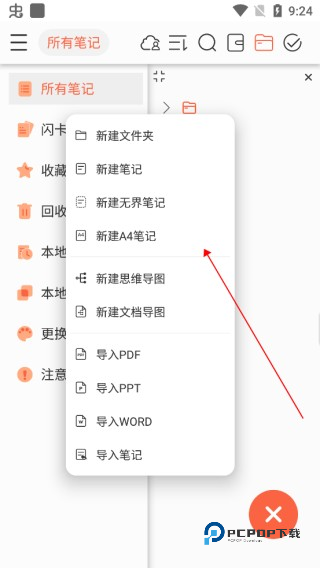 答:第三方导入PDF,如果文件太大的话,可能会出现该情况,可以在所有笔记界面右下角导入PDF。