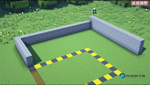 5、在使用蓝色玻璃做一面墙,围墙下面在垫一层输液装饰,让结构更加美观。