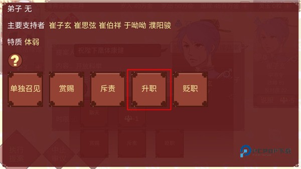 新手误区是在全部职位里选择剥夺实权,这个操作那是相当不划算,不仅会掉很多连带的忠诚,且一些有后台的就算你把他下贬到七八九品,下个月的时候他又会依靠世家的帮助重新爬回六七八品,甚至会顶掉你原本在职的可用人才。