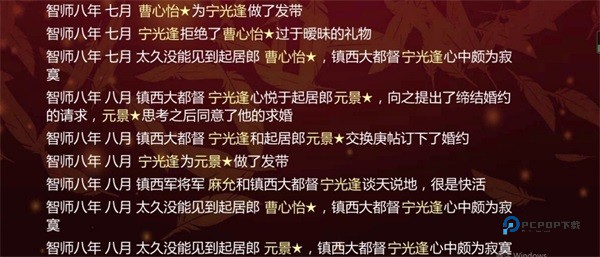 如果不想让心腹同他人结婚,不管是出于政治还是喜爱,可以在一年一度的宫宴上留意他们要参加宴会的消息,趁他们回来时单独召见快速把好感拉满,如果不氪金买精力,那我是先推荐把宁的好感先刷满,因为在我这个档里鞠姐姐对小融不怎么感冒,反而是沙和宁很容易就好上了。