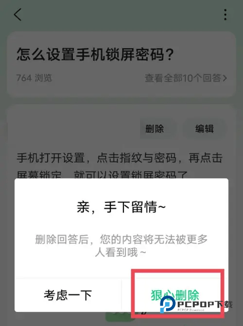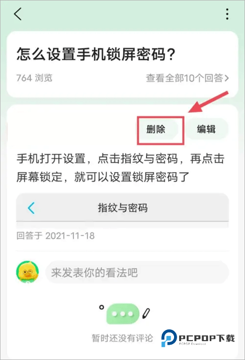 4、进入详情页面后,点击页面中的【删除回答】选项