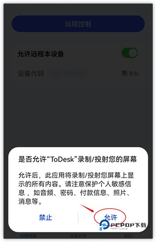 打开app后,在主界面点击允许远程本设备按钮