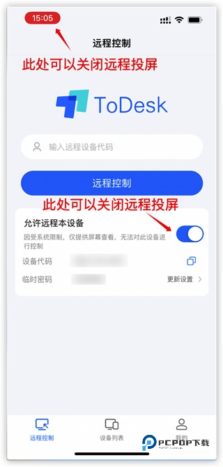 如需关闭投屏模式,点击状态栏的关闭投屏按钮或关闭允许远程按钮