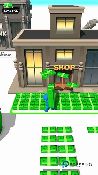 1、类似3D立体的大富翁游戏,玩家在街道上拾取现金,提升经济实力;
