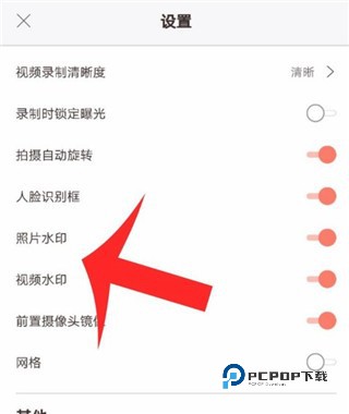 3、向下滑动寻找过程中,我们可以发现两个设置选项,分别是照片水印和视频水印,这里便是我们在开头提到的那两个去掉或添加水印的选项。