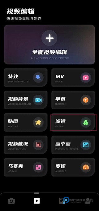 特效、MV、视频压缩、字幕、贴图、滤镜、视频截取、封面、倒放、变速等功能。