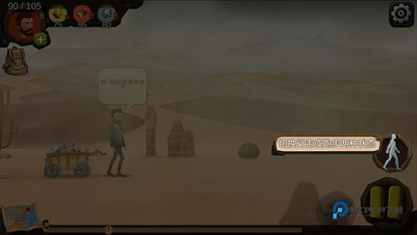 3、进入游戏后下方可以切换行走或者跑步两种状态;
