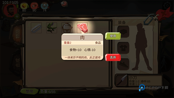9、战斗胜利后会获得资源,例如肉,可以补充你的饥饿值以及心情;