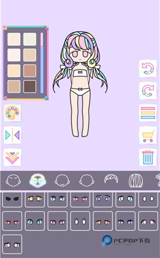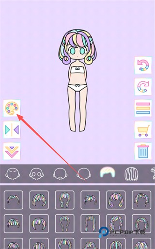 2、进入游戏界面,点击侧边栏的颜料盘,可以选择小女孩的肤色。