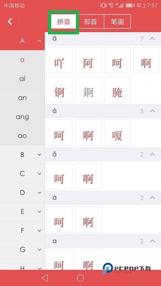 3、自由的翻,然后到您想查的音节处,点按互为照应的字,就可到呈入的那页,很易翻查。