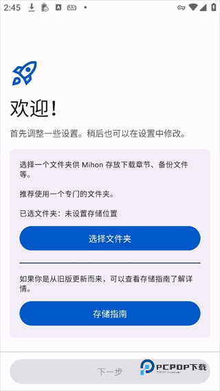 2、你需要选择一个文件夹供Mihon存放下载章节、备份文件等推荐新建一个空的文件夹