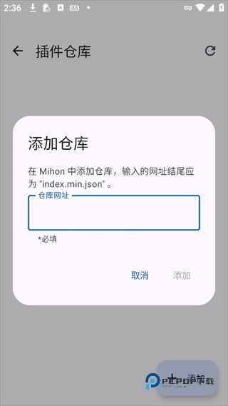 输入index.min.json结尾的插件仓库网址,第三方插件仓库地址如下: