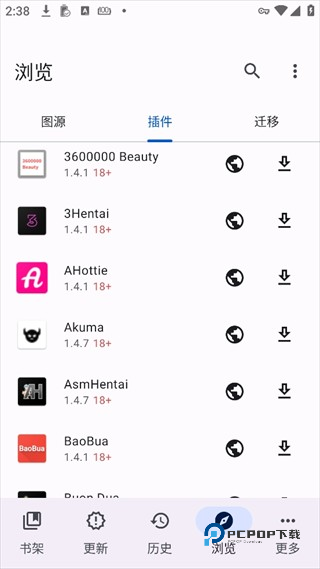 7、接下来可以根据自己想看的漫画安装不同插件