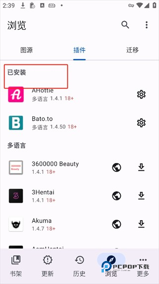 Mihon本身并不提供漫画,而是通过安装插件的方式从不同图源获取漫画,因此我们需要先安装插件,