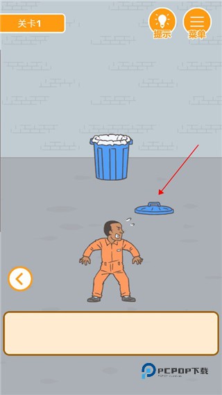 1、第一关,点击下方的箭头切换场景,点击盖子,拿到后将它拖动都垃圾桶上即可。