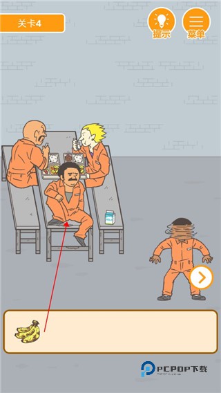 4、第四关,切换场景,拿到垃圾桶里的香蕉,将香蕉给牛奶旁边的人,他离开后拿到牛奶,递给另一个场景中的胖子即可。