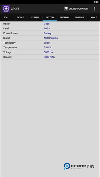 4、BATTERY可查看手机电池详细信息:电量、状态、温度、电压等。
