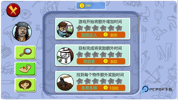 无厘头:寻找到物品时的额外加成时间金币个增加1个;