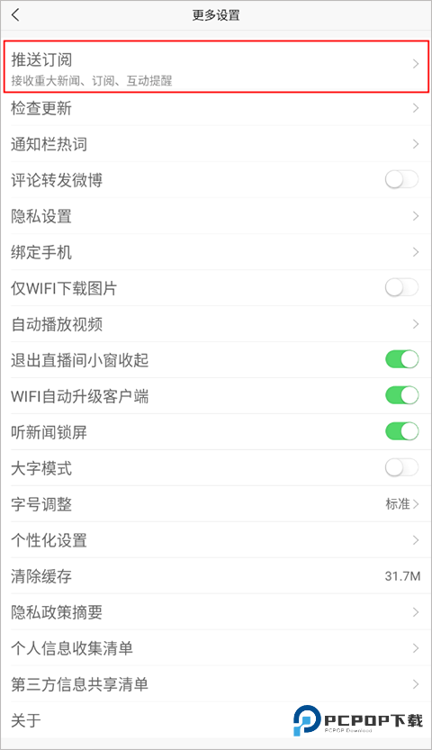 2、进入设置页面后,可看到“推送订阅”选项。