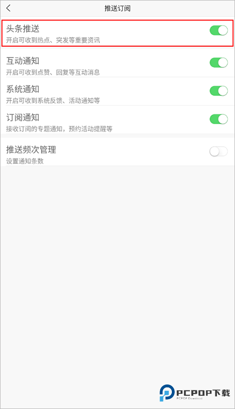 3、将“推送订阅”右侧的开关关闭,即可完成推送关闭操作;此外,在此页面还可根据需求设置推送频次。