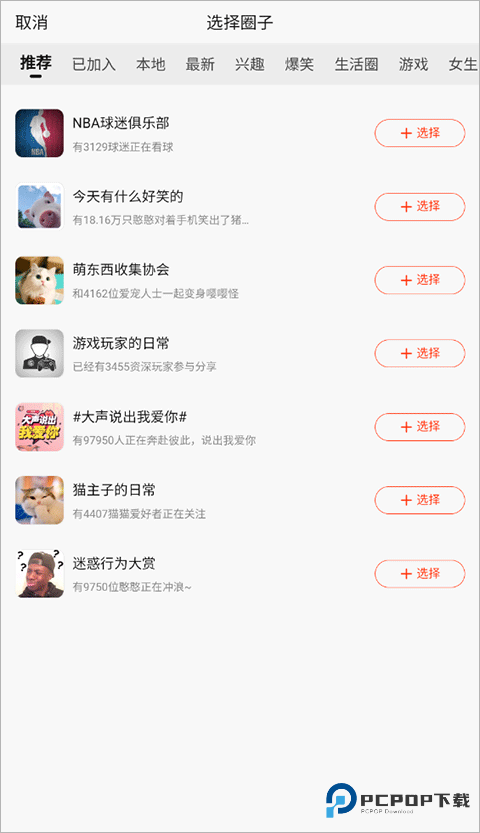 2、接着选择你想要发布动态的圈子。