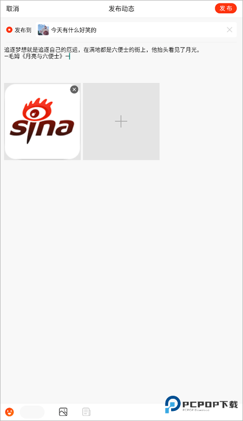3、最后填写好发布内容,添加相应的图片,点击“发布”按钮即可完成动态发布。