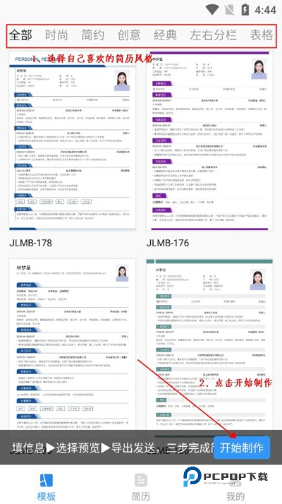 1、登录进入软件后,先选择好自己需要的简历风格,然后点击【开始制作】即可进行简历制作