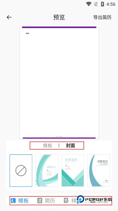 3、如果对简历效果不满意的话,可以进行一键替换封面或者模板,也可以自行调整排版