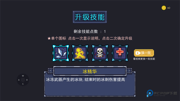 7、完成一定关卡还会获得技能,玩家需要在4个技能中选择一个