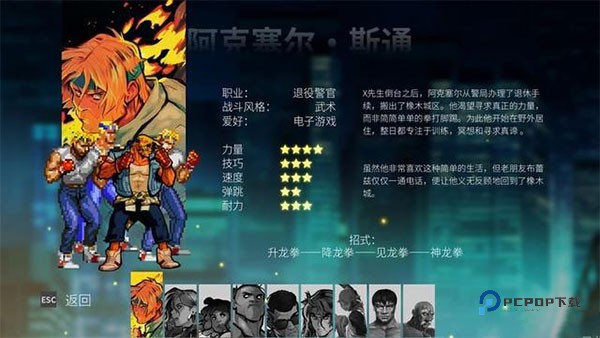 属性均衡的武术家,常见招式有各种升龙组合拳,对付单边敌人连招爽快。