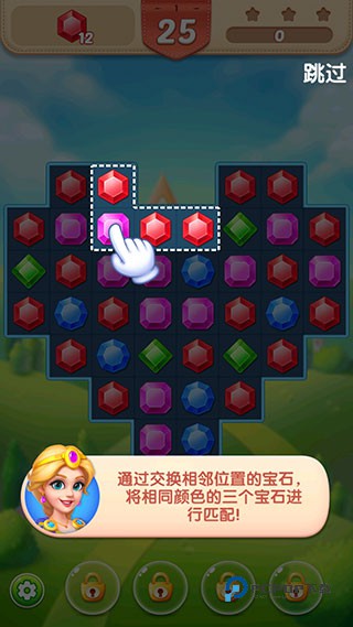 1、游戏的目的是交换相邻的钻石,形成水平或垂直线的三个或更多的钻石;