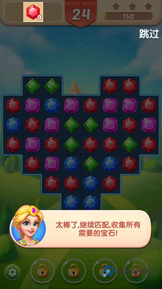 3、太棒了,继续匹配,收集所有需要的宝石!收集进度会显示在左上角。