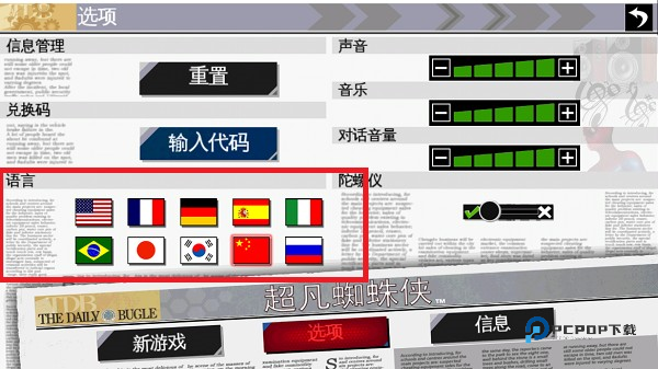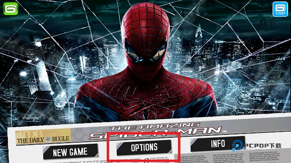 1、打开超凡蜘蛛侠后,点击红框内“options”