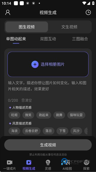 2、视频生成:让你的照片动起来,还能加入捏人、爆炸等热门特效。让回忆重新注入活力与魔法。