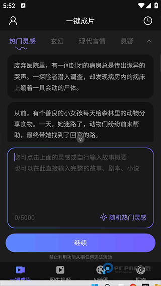 在灵感库自行输入故事梗概、剧本等内容,输入限制为 5000 字以内。