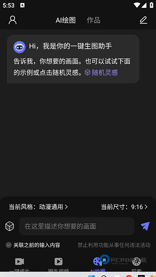 3、AI绘图神器:输入一段画面描述次,并选择你喜欢的风格,便可以生成一张令你满意的艺术画作。