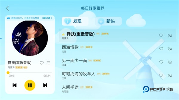 清新的封面图及歌手美图配合歌曲支持,自动调配。