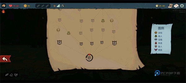 每章节分为普通怪物、精英怪物、宝箱、随机事件、商人、BOSS六个部分,新手推进时,优先清理普通怪物积累卡牌和血量,遇到精英怪物需评估自身战力,战力不足可绕行,优先保证存活。