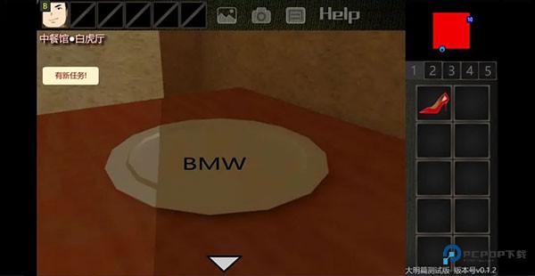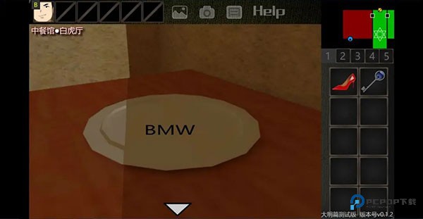 8、点击并获得高跟鞋,点击盘子,发现线索“BMW”。