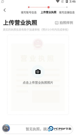 5、上传银业执照,若无营业执照可以跳过此步。