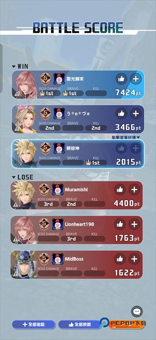 3、通过不断积攒勇气值消耗boss血量,最后率先击杀boss的队伍获胜,要注意击败玩家只是延缓他们进度,击败boss才是胜利目标。