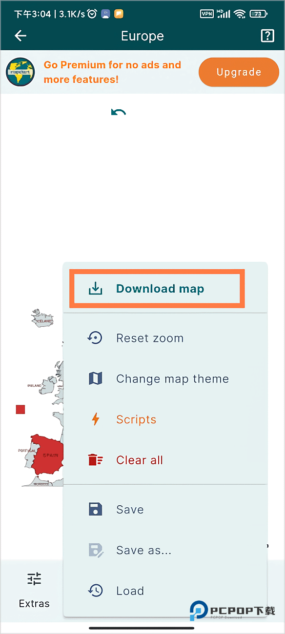 3、然后再弹出的功能条中点击选择“Download map”并给保存的地图进行命名。