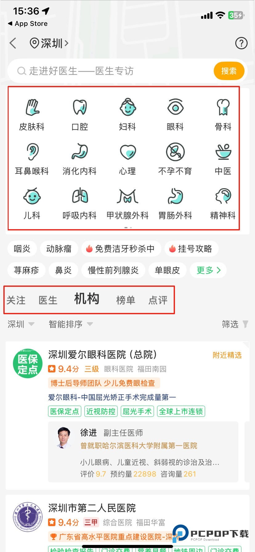 2、选择科室与机构
