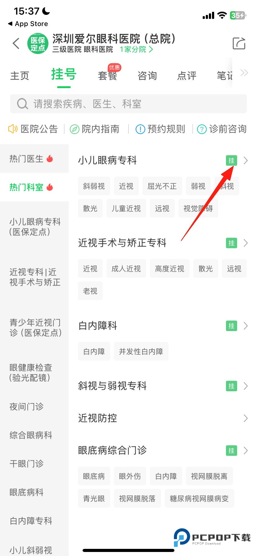 3、选择更加精细的科室,然后点击挂号